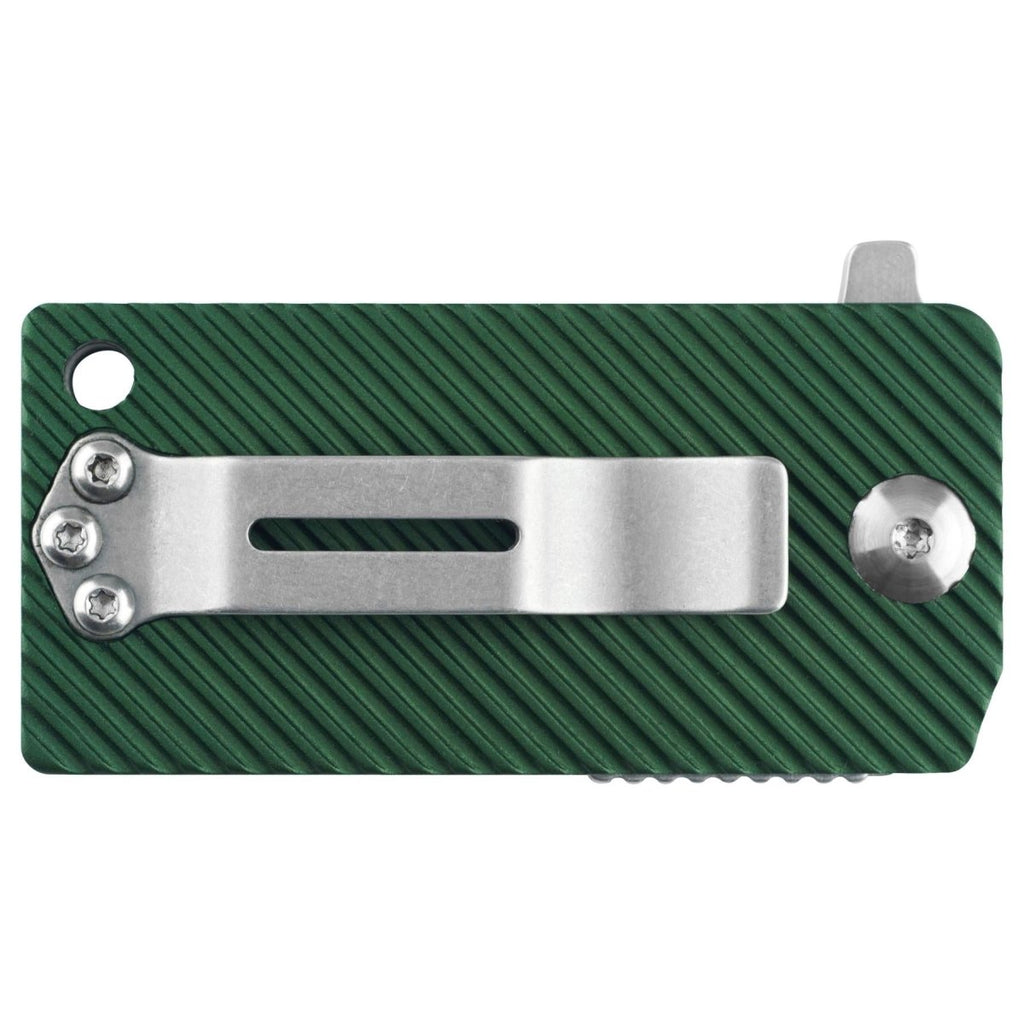 • The olive green aluminum handle adds both strength and style. It provides a firm grip and feels secure in your hand, even in wet or cold conditions. You can hold it comfortably for extended periods without losing control or precision. The handle’s anodized finish also enhances durability and creates a clean, tactical look that stands out from ordinary pocket knives.