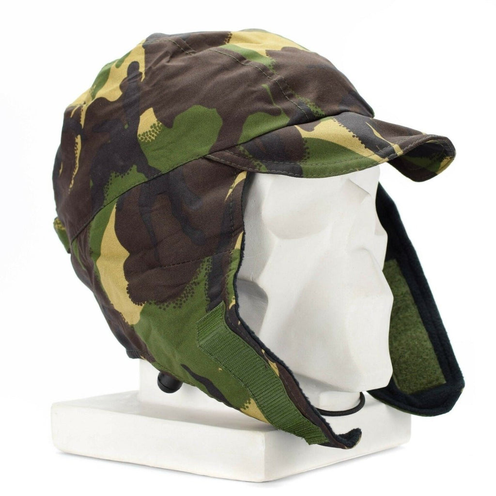 A genuine British military paratrooper cap is a type of headwear worn by soldiers in the British Armed Forces. It is typically made of durable materials such as Gore-Tex, a waterproof and breathable fabric, and features a DPM (Disruptive Pattern Material) camouflage pattern, which is designed to break up the wearer's outline and make them more difficult to spot in a variety of environments. The cap is designed to protect the head from the elements, and may also have a brim or visor to shield the eyes from sun and rain.