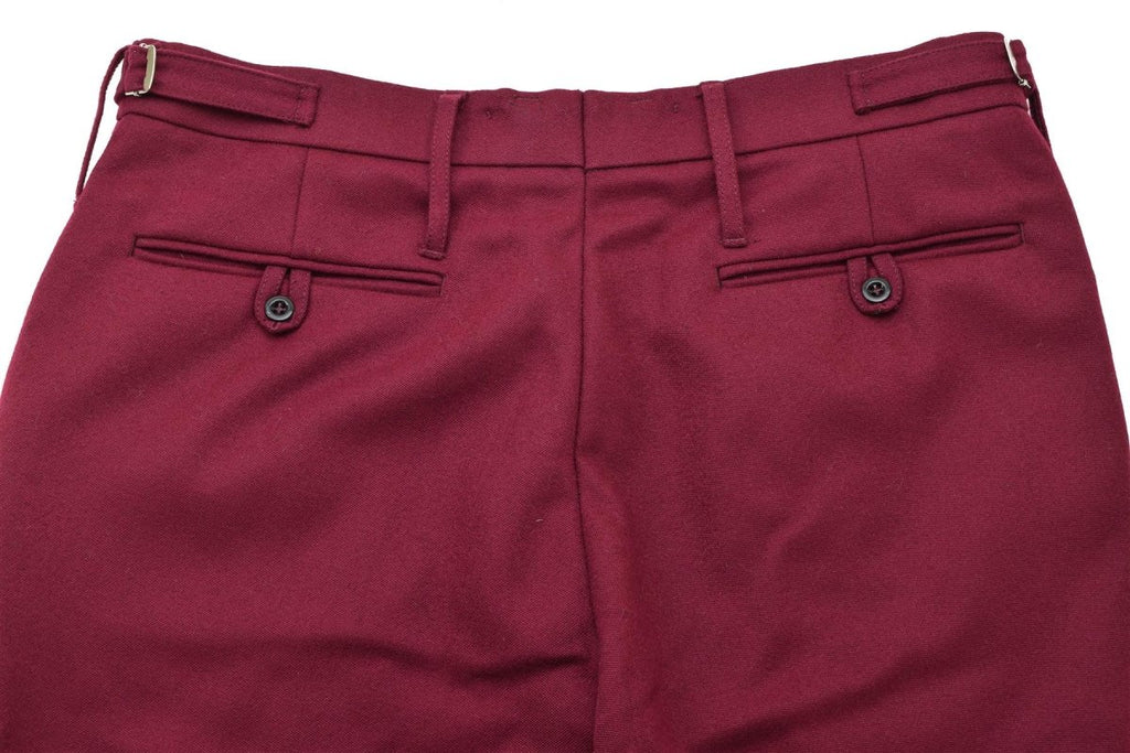 • Enhance your wardrobe with a staple piece that stands the test of time. Embrace the heritage and craftsmanship of British military attire with these exquisite Bordeaux trousers, a symbol of timeless elegance and impeccable refinement.