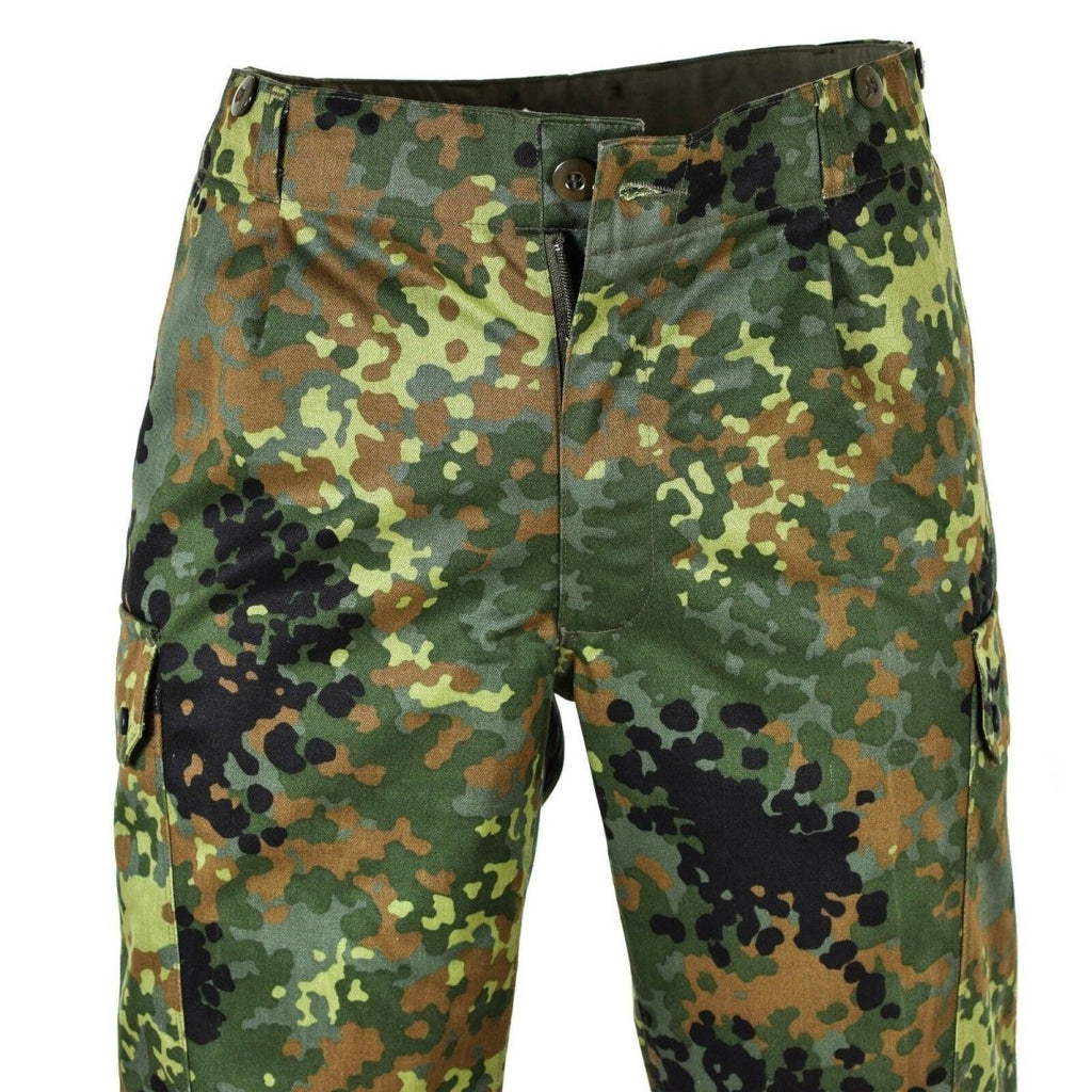 - With multiple pockets for carrying equipment and additional features like reinforced knees and adjustable waistbands. These Flecktarn camouflage field pants offer both practicality and comfort. They're designed to keep you prepared and comfortable during long hours of duty or outdoor adventures.