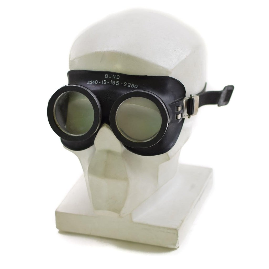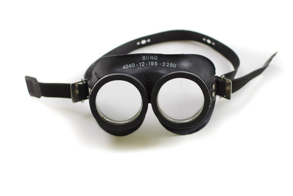 Keep your eyes safe while looking cool with these German army protection goggles. These vintage military protection goggles were originally used by the military in Germany but they're now available to civilians. The vintage military protection goggles style and black color make them a trendy accessory. With an adjustable head strap, they'll fit anyone comfortably. Whether you're on the beach or in the city, these goggles will keep the sand and wind out of your eyes.