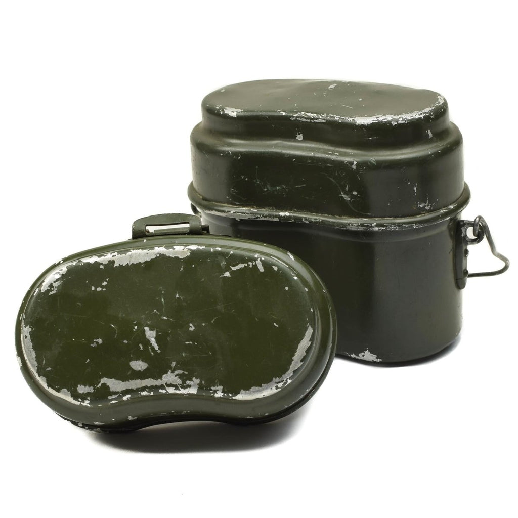 Introducing the vintage army mess kit, a nostalgic piece of military history blending functionality with vintage charm. This authentic aluminum bowler pot set, a true relic from the Hungarian Army. Is a unique addition to your collection or outdoor gear.