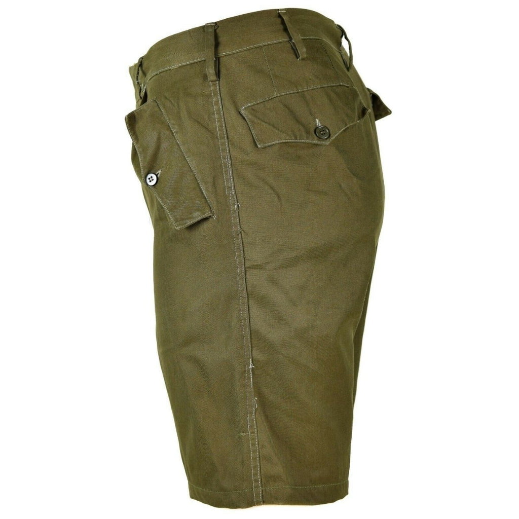 Introducing the classic and vintage Genuine Italian Army Olive Chino Shorts, a staple of military fieldwear. These shorts encapsulate the timeless style and practicality of the Italian military.