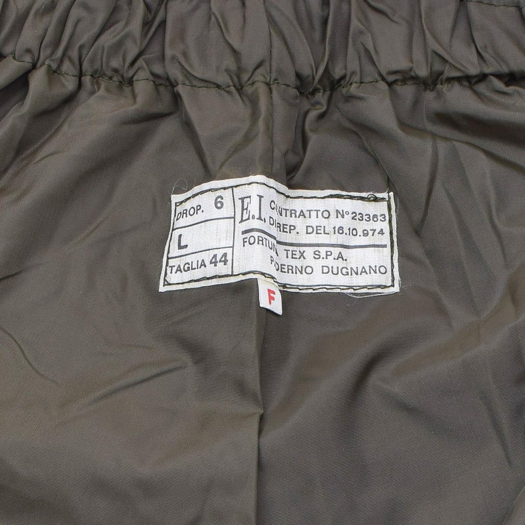These are Italian military rain pants that were originally issued to members of the Italian army air force. They come in an OD olive color and are thermal lined for added warmth and comfort. The pants have hook and loop side leg openings, which make them easy to put on and take off over boots or other footwear. The pants are designed to protect the wearer from rain and other elements, and their military-grade construction ensures that they are durable and long-lasting. Italian military rain pants can be worn alone or over other layers of clothing to provide additional insulation and protection from the elements.