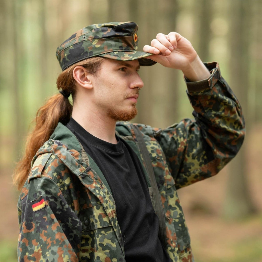 Look sharp and feel confident with this Genuine Original German army Flecktarn cap. This breathable, foldable military cap is perfect for outdoor adventures or just as a great fashion accessory. Show off your tactical style with this original military surplus hat in its timeless BW woodland camo color. Plus, the classic flecktarn camouflage design allows you to blend in with your surroundings while still looking unique. Step up your style game now with this one-of-a-kind military hat.