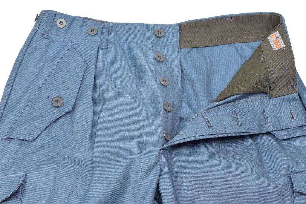 Introducing the versatile Swedish M59 pants, authentic military trousers built for endurance and functionality. These cargo-style blue pants boast reinforced knees, ideal for outdoor adventures like hiking and camping.