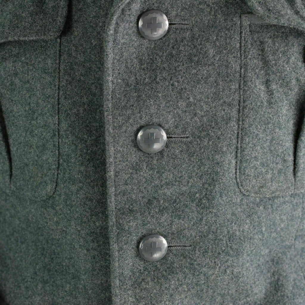 • Classic Grey Wool: Moreover, the army surplus wool jacket is crafted from high-quality wool in a classic grey colour. Adding a touch of timeless sophistication to both its appearance and functionality.