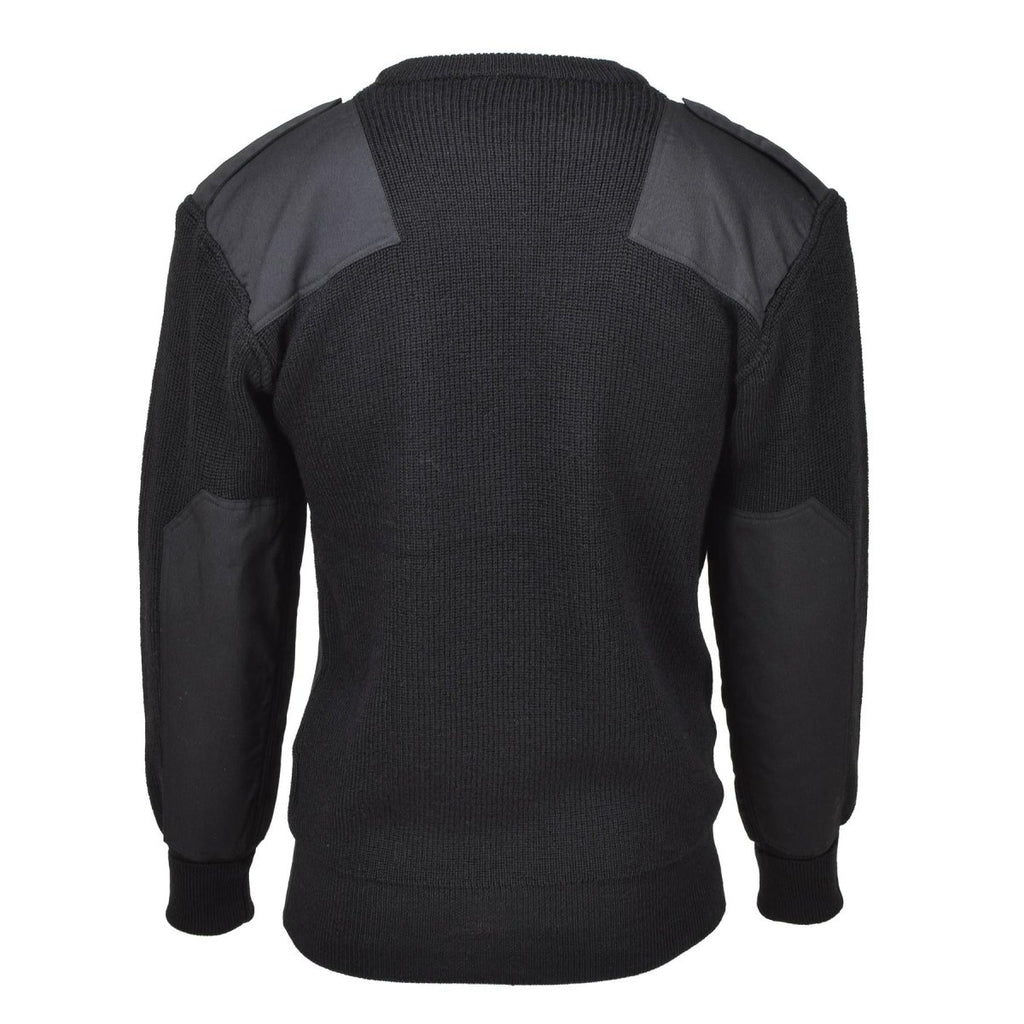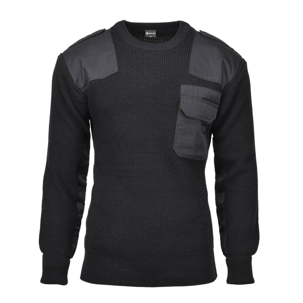 Introducing the MFH Brand German army sweater, a rugged black commando jumper crafted for military use. Made by the esteemed German company MFH, this pullover boasts high-quality materials that ensure warmth and durability.