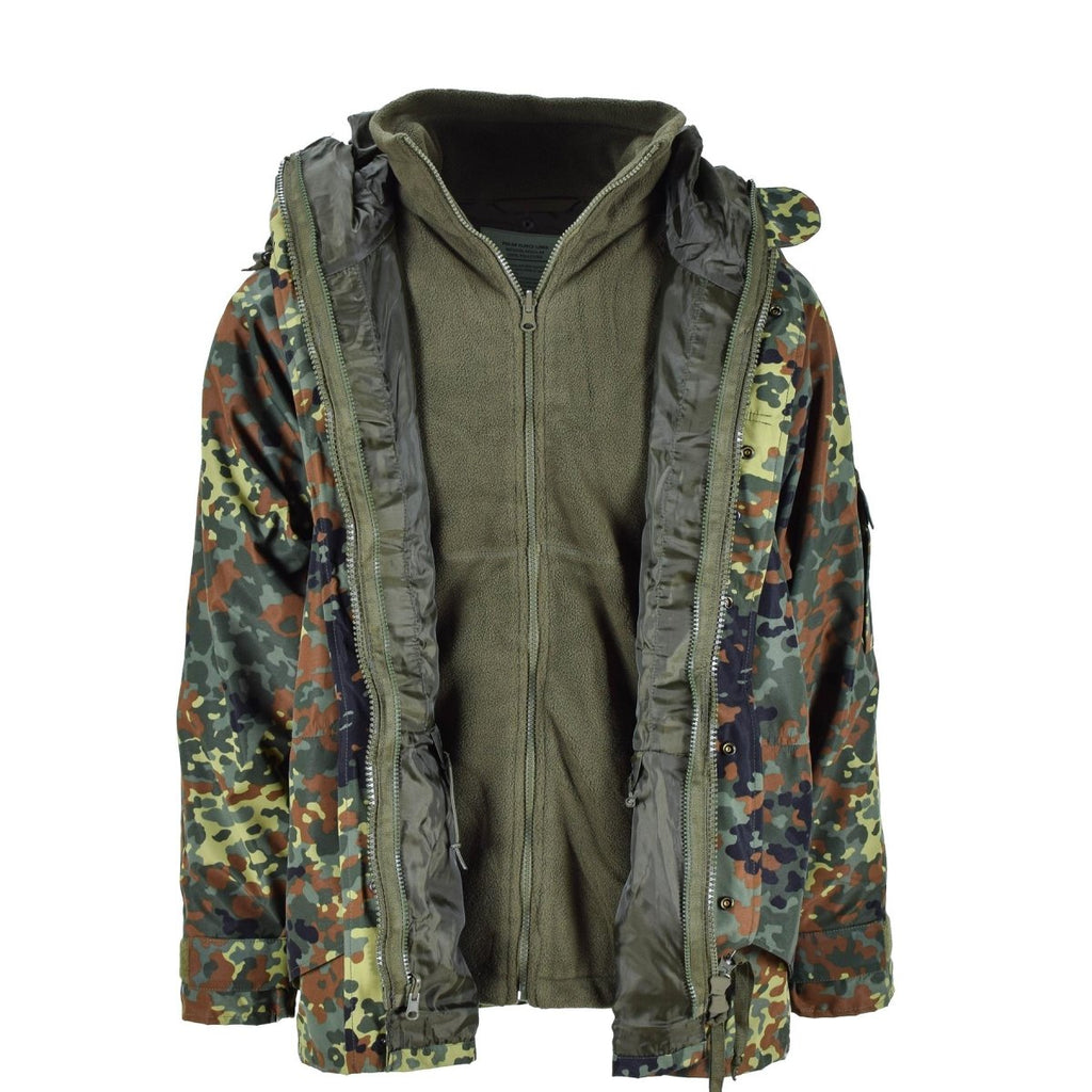 - Crafted with a three-layer laminate design, this Bundeswehr waterproof jacket offers optimal warmth and versatility with its detachable fleece liner. Making it suitable for year-round use. Whether you're braving the elements during a winter expedition or seeking reliable rain protection in spring showers. This parka is a versatile choice that adapts to various weather conditions.