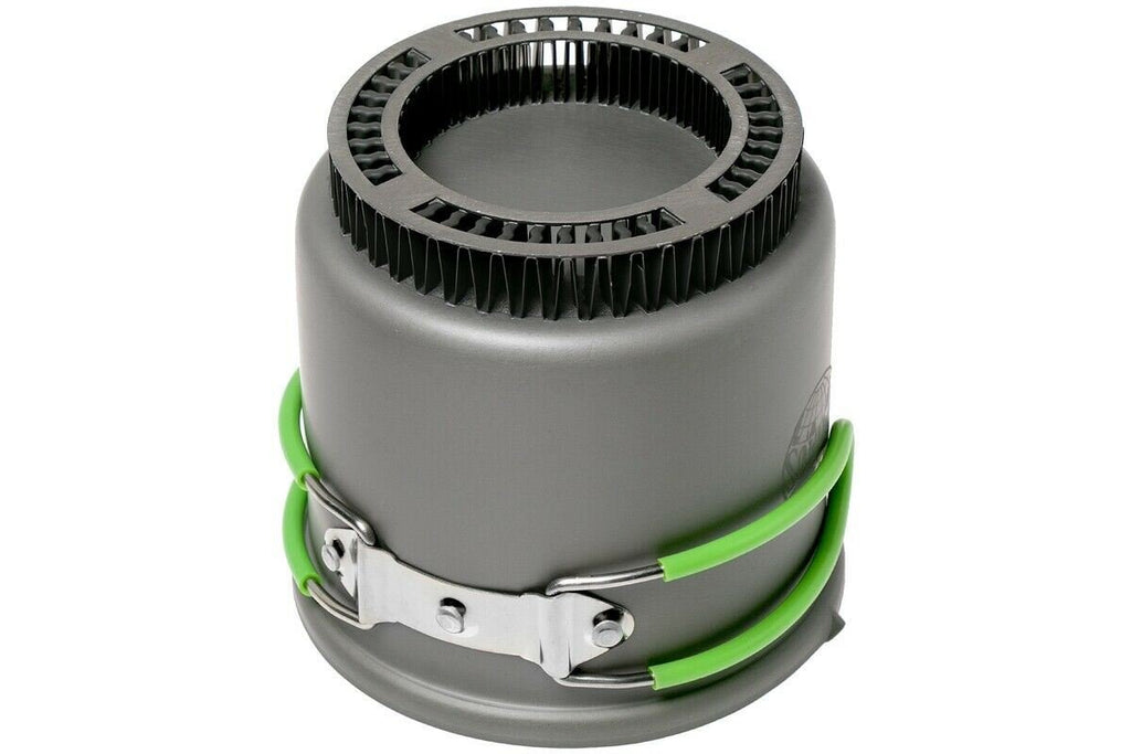 - The set includes durable, lightweight pans that feature a heat exchanger for faster and more efficient cooking. This feature reduces cooking time, conserves gas, and ensures even heat distribution. With this cooking system, you can prepare meals easily. And enjoy delicious food no matter where you are.