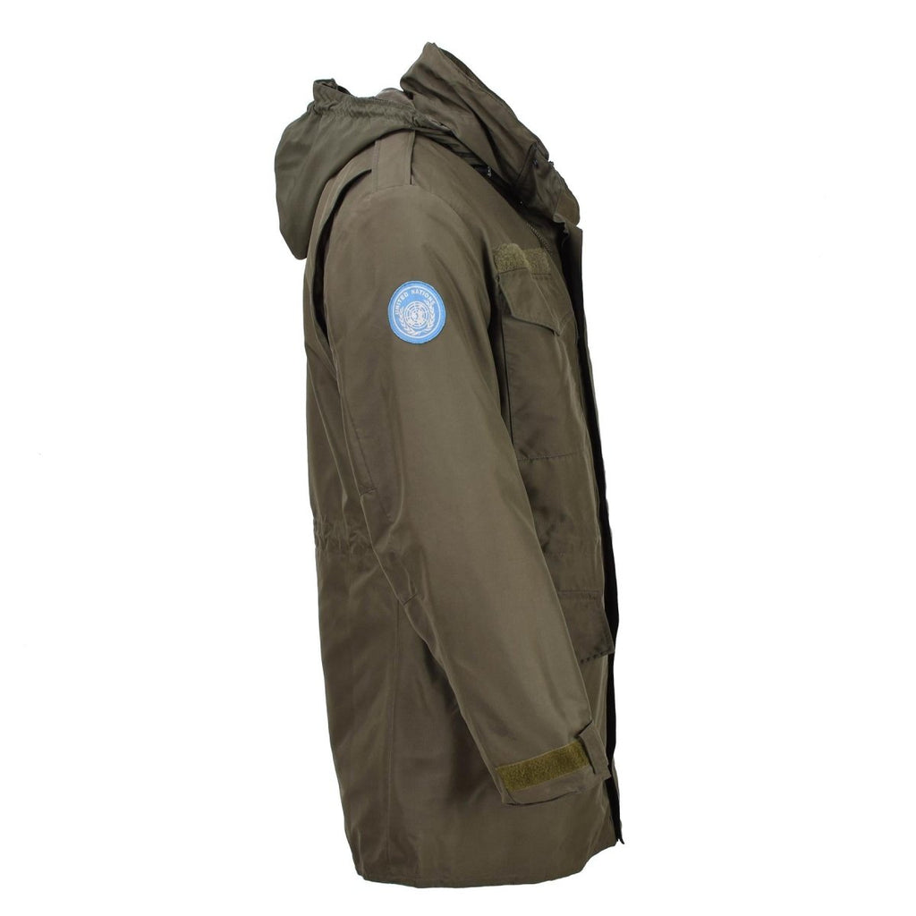 - The goretex military parka's design includes a stand-up collar for a polished appearance. Suitable for both casual outings and formal settings. An Austrian Army insignia badge on the shoulder adds a unique touch of authenticity. The removable liner offers additional warmth, and the zipper closure ensures a snug and secure fit.