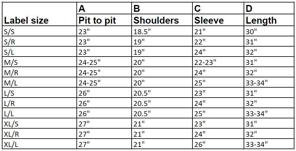 Pit to pitShouldersSleeveLength
