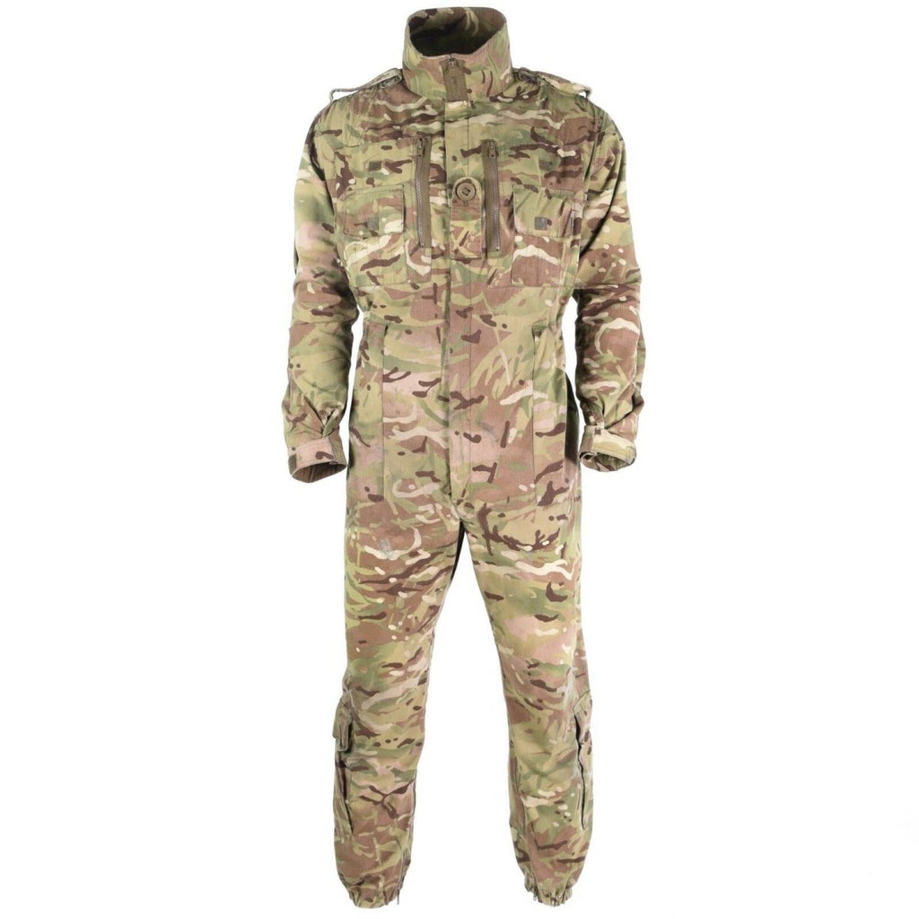 Authentic British Military AFV Crewman Coverall in MTP Multi-Tarn camouflage, designed for armored vehicle personnel and demanding field operations. This original issue one-piece suit offers practical protection, durability, and functional storage in a professional military design.