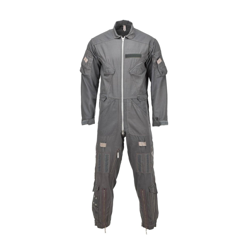 The Netherlands Military Air Forces Coverall is a one-piece jumpsuit designed for use by personnel in the Netherlands Military Air Forces. It is made from a fire-resistant Nomex material and is typically worn over other clothing for protection against heat and flames. The coverall is gray in color and features a front zipper closure, multiple pockets, and reinforced areas at the knees and elbows for added durability. It is designed to be lightweight, comfortable, and practical for use in a variety of situations, including aircraft maintenance, aircraft loading, and other ground support duties.