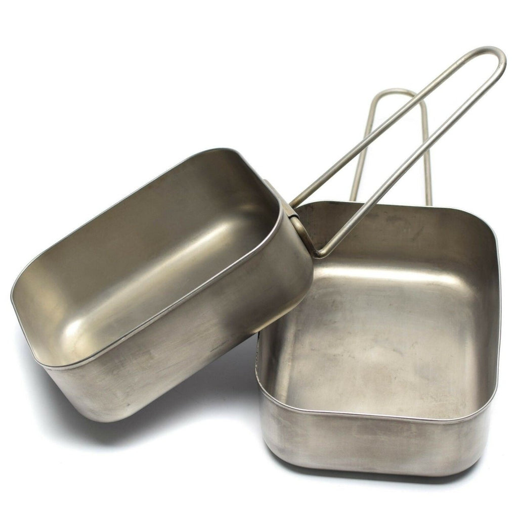 - This stainless steel mess kit features two compartments, allowing you to cook, heat, and store meals with ease. The nesting design ensures compact storage and easy transport, making it a practical addition to any camping or tactical gear. Its sturdy construction handles tough conditions, making it perfect for extended outdoor adventures.