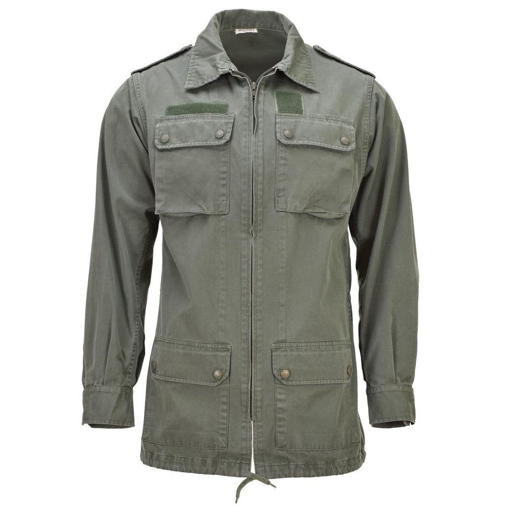 Original French Military Classic Jacket Large Front Pockets Solid Olive