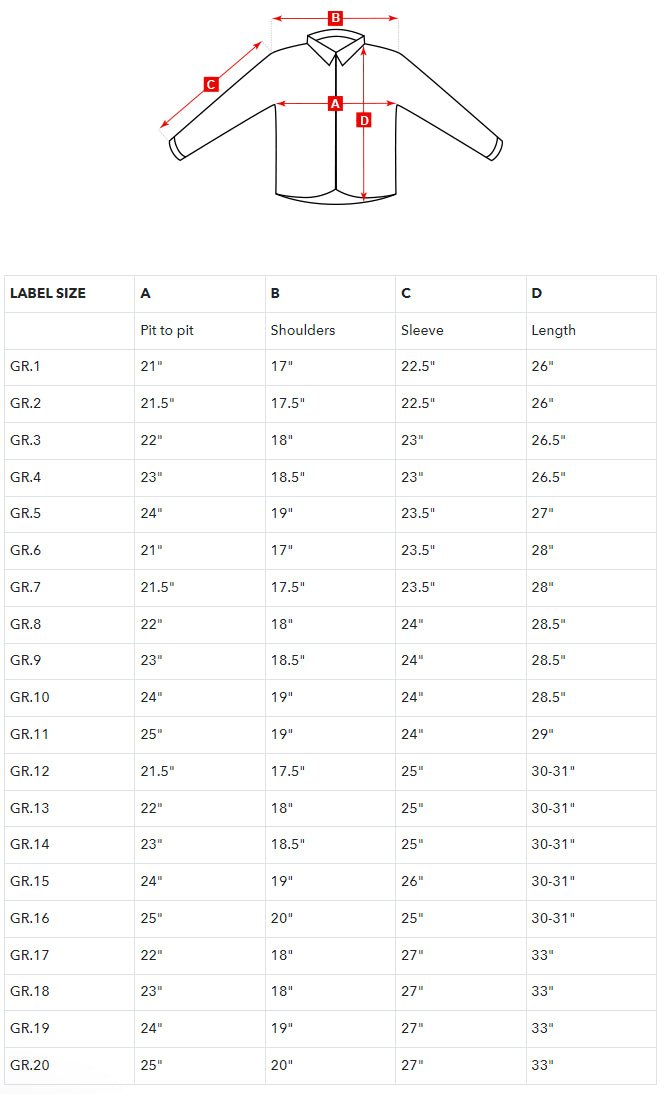 | Pit to pit | Shoulders | Sleeve | Length | |