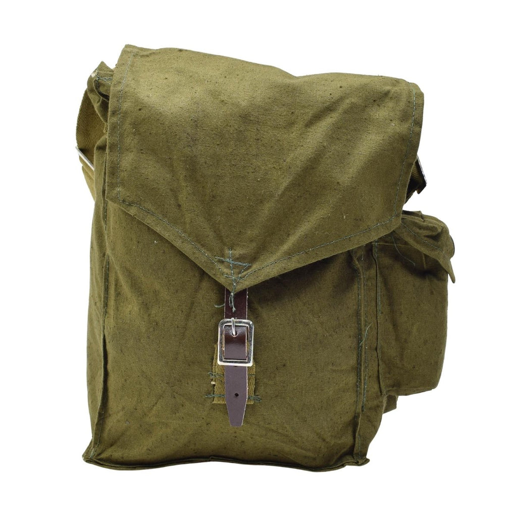 This olive green canvas gasmask bag combines military durability with everyday practicality. Originally designed for the Hungarian military, this rugged bag offers a unique blend of history and function.