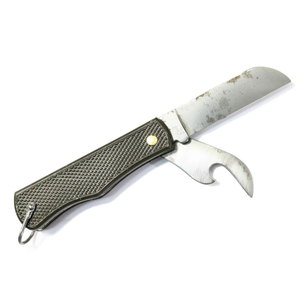 The Italian military pocket knife with can opener serves as a versatile and reliable tool for outdoor enthusiasts and military personnel alike.
