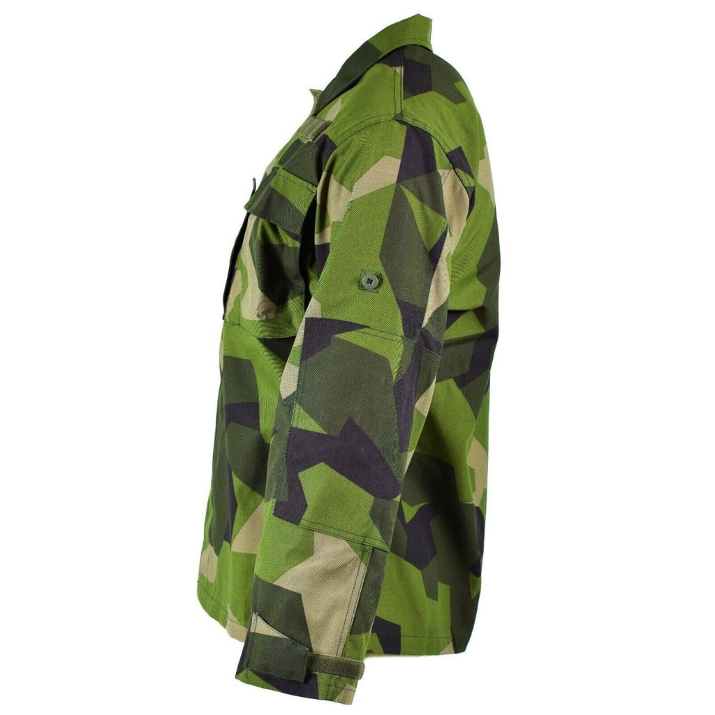 The Original Swedish Army M90 jacket in splinter camouflage is a military-style jacket that was originally used by the Swedish Armed Forces. The splinter camouflage pattern consists of various shades of green, brown, and black, and is designed to blend in with woodland environments.