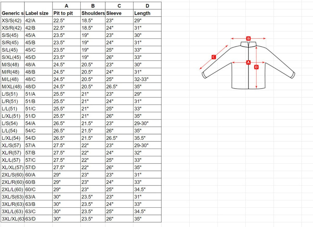 | 3XL/R(63) | 63/B | 30" | 23.5" | 24" | 33" |