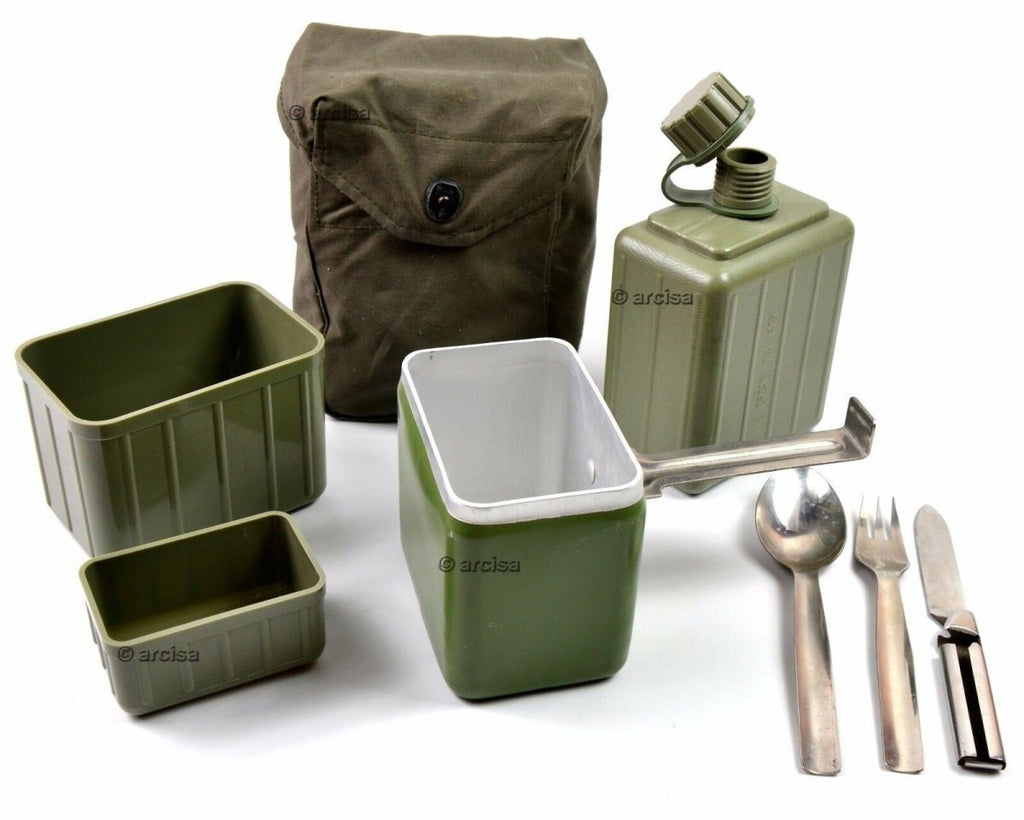 • SET INCLUDES : Pouch, Pot, Bowl, Canteen, Cup, Spoon, Fork, Knife
