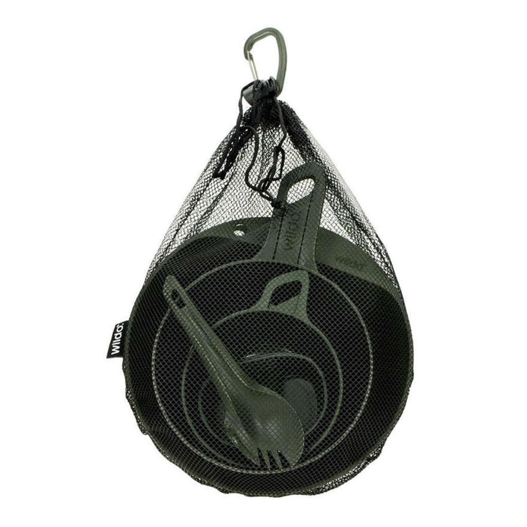 This Wildo Brand camping utensils kit is a versatile set of utensils designed for outdoor adventures. Made from high-quality, BPA-free materials, the utensils are durable, lightweight, and safe to use. The olive explorer kit consists of two plates, two bowls, a cup, and a spork (combination spoon and fork).
